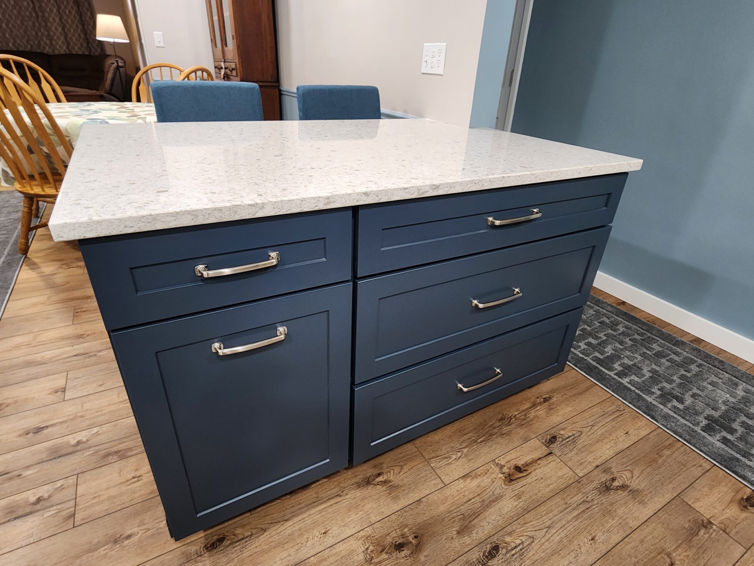 Built a large, functional kitchen island, creating additional prep space, seating, and a central gathering area.